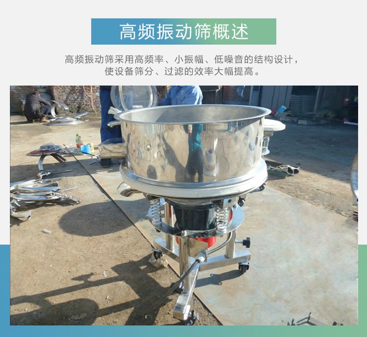 高頻篩也叫高頻振動(dòng)篩,采用高頻率、小振幅、低噪音的結(jié)構(gòu)設(shè)計(jì),使細(xì)粒物料在篩面上高速振蕩,破壞了漿液的表面張力,增加了物料與篩孔接觸的頻率,使設(shè)備篩分、過濾的效率大幅提高,廣泛應(yīng)用于食品、醫(yī)藥、化工、磨料、陶瓷、礦業(yè)、顏料、冶金、地質(zhì)、國防、電子等行業(yè)的漿料、粉料、顆粒生產(chǎn)的分級(jí)、過濾。方便的活動(dòng)車架在工作場所可以隨意移動(dòng),不用進(jìn)行復(fù)雜的設(shè)備安裝,高低可調(diào)、操作簡單、經(jīng)久耐用。
