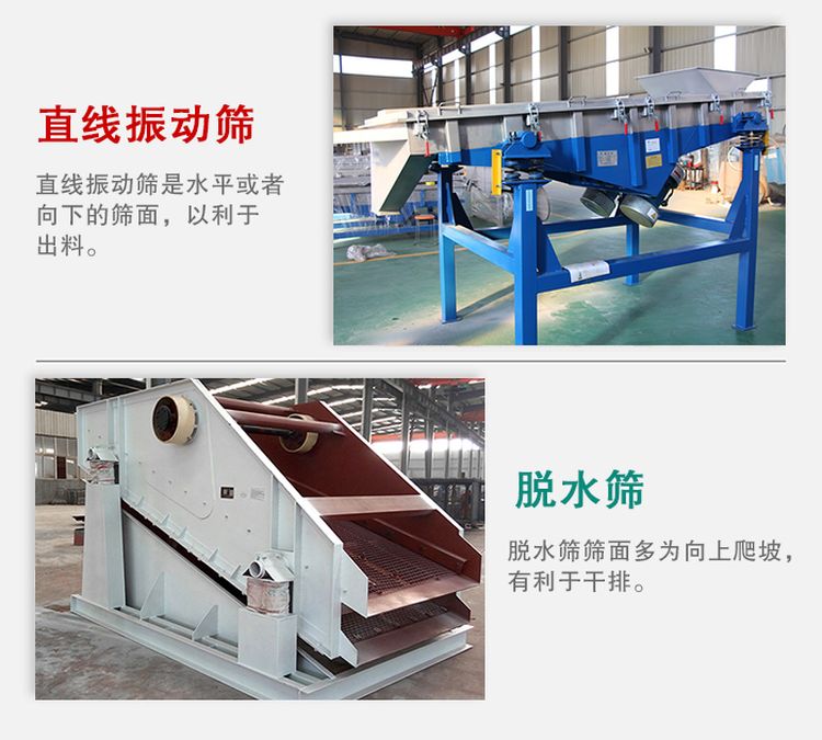 脫水篩篩面多為向上爬坡,有利于干排;直線振動(dòng)篩是水平或者向下的篩面,以利于出料。