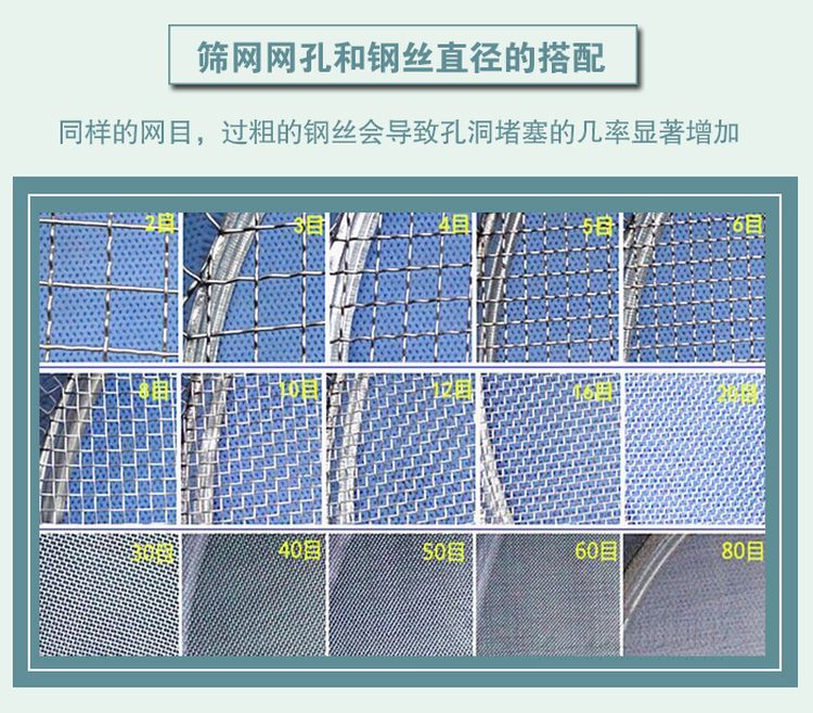 實(shí)踐證明,同樣的網(wǎng)目,過粗的鋼絲會(huì)導(dǎo)致孔洞堵塞的幾率顯著增加。