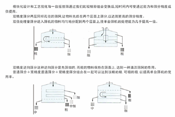 搖擺篩它采用仿生人工篩分的原理,將手工篩分動(dòng)作的“篩”-(平面圓周運(yùn)動(dòng))和“簸”-(向上拋物料)這兩種運(yùn)動(dòng)形式好的結(jié)合在一起,解決精細(xì)與超精細(xì)范圍的粉末與顆粒物料的篩分難題。