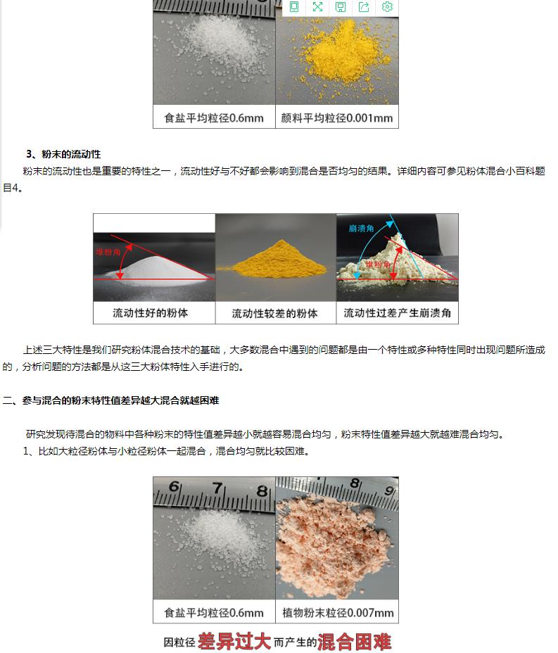 解決方法是混合之前要針對這樣的粉體做相應(yīng)的混前預(yù)處理。詳細(xì)內(nèi)容參見粉體混合小百科題目7.