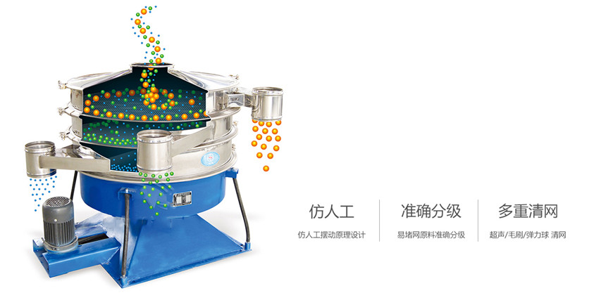 搖擺篩是一種仿人工搖動(dòng)的低頻旋振篩,其原理是:瞬時(shí)運(yùn)動(dòng)為沿徑向的位移和以此位移為軸的圓周運(yùn)動(dòng)的合成(螺旋運(yùn)動(dòng)),即可調(diào)節(jié)偏心距的激振器產(chǎn)生了非線性三維運(yùn)動(dòng),物料也產(chǎn)生同樣的近似手動(dòng)作業(yè)的運(yùn)動(dòng),從而達(dá)到篩分之目的,再配合篩分附件可獲得更加理想的篩分效果,適合于圓形狀、圓柱狀、片狀、乃至 于規(guī)則形狀易堵網(wǎng)且需要精細(xì)篩分的物料,是為了滿足大產(chǎn)量、高密度篩分用戶而設(shè)計(jì)的一種篩分設(shè)備,與一般圓形篩相比,它的篩分精度、效率、產(chǎn)量、篩網(wǎng)壽命能提高5-10倍,符合所有精細(xì)與超細(xì)范圍的粉末與微粒狀物料,特別適合難以處理的物料。還可單層或多層篩分,一次可篩分至6個(gè)粒度。搖擺篩適合精細(xì)和超細(xì)范圍的粉末和微粒狀物料,產(chǎn)量大、精度高