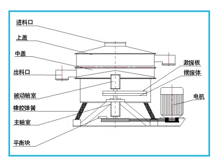 振動(dòng)電機(jī):是設(shè)備的主要?jiǎng)恿碓矗ㄟ^振動(dòng)電機(jī)激振力的作用使物料在篩面上運(yùn)動(dòng)。