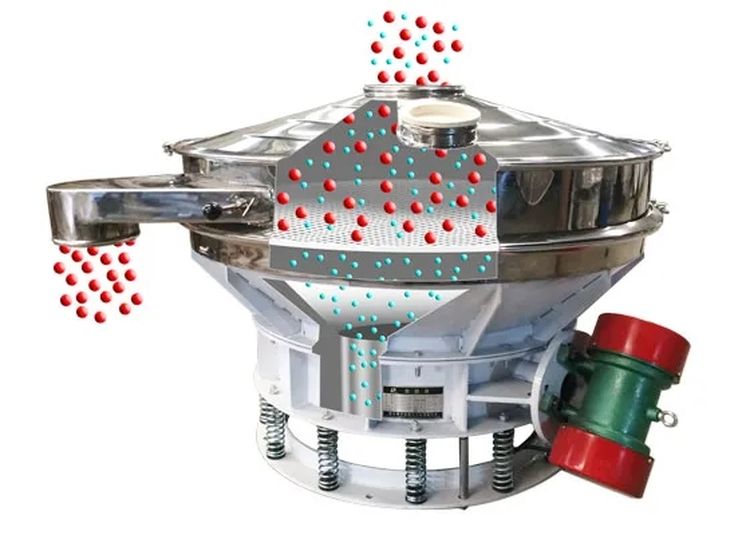 直排篩的作用原理是振動電機軸上下端的兩組偏心塊(不平衡偏心塊),將振動電機的旋轉(zhuǎn)運動變?yōu)樗健⒋怪?、傾斜以及離心作用的多作用力重疊,再將這種作用力傳遞給篩面。改變上下偏心塊的相位角和可以改變激振力的大小和物料的運動軌跡?! ?/p>