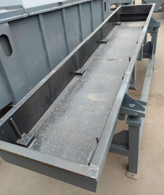 振動(dòng)輸送機(jī)一般由振源—振動(dòng)電機(jī)或激振器、承載體、減振支承、承載基礎(chǔ)及相關(guān)配套附件等組成。根據(jù)現(xiàn)場(chǎng)使用環(huán)境及輸送物料特性要求,輸送機(jī)承載體可采用不同材料分別加工成U形槽和管狀等結(jié)構(gòu)形式,并可按有無密封要求制作成敞開型或封閉型,以滿足不同工藝流程;由于設(shè)備承載體是金屬制件及潤滑點(diǎn)遠(yuǎn)離物料,因此,該機(jī)不僅可以輸送各種常溫、普通物料,而且可以輸送很多高溫、有毒等非常規(guī)物料;如對(duì)承載體施行特殊加工,則在輸送過程中可實(shí)現(xiàn)物料的篩選、干燥、加溫、冷卻等工藝要求。