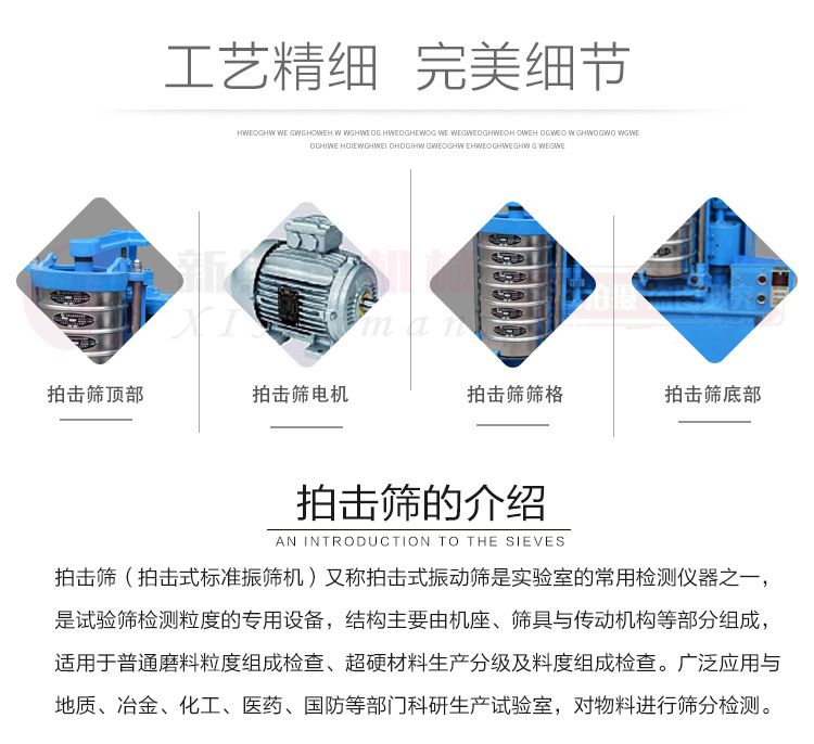 2、本機(jī)采用電子數(shù)控操作面板,數(shù)顯定時(shí),可準(zhǔn)確方便調(diào)整每次篩分時(shí)間,并記錄每次拍擊次數(shù)及每次的搖擺次數(shù)。