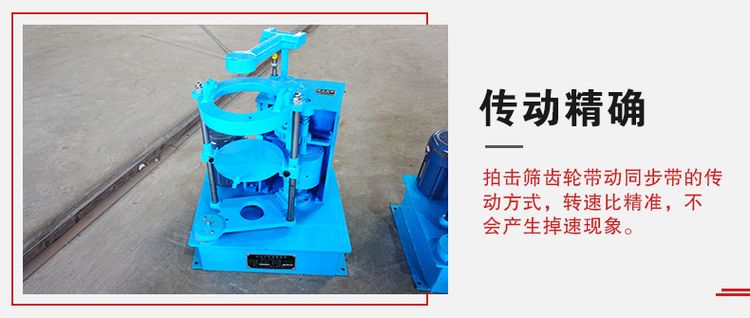拍擊篩齒輪帶動同步帶的傳動方式,轉速比精準,不會產生掉速現象。